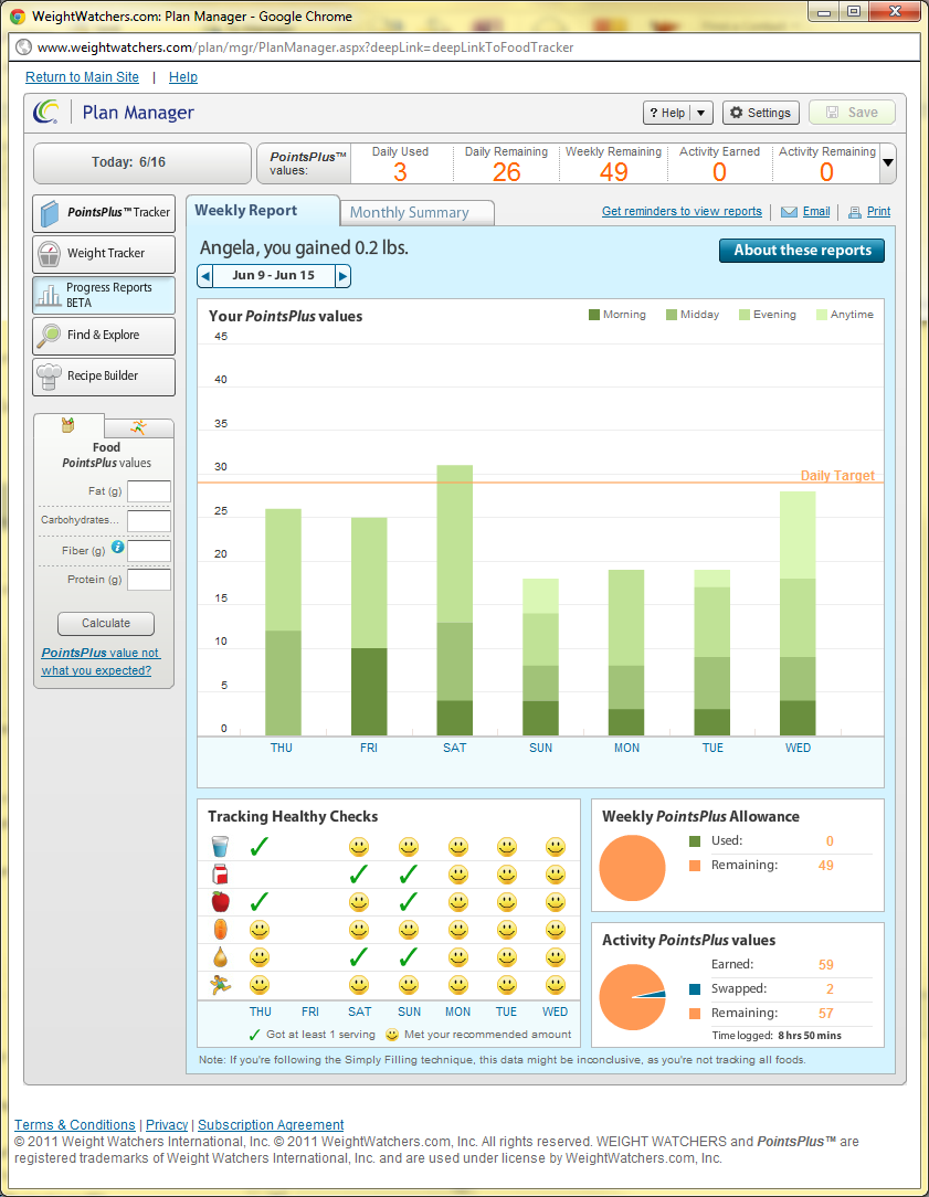 WI – 161.2 lbs, up two tenths of a pound. Seriously, two tenths?  Who measures in tenths of a pound?  Oh.  Weight Watchers does.  Next week will be better.