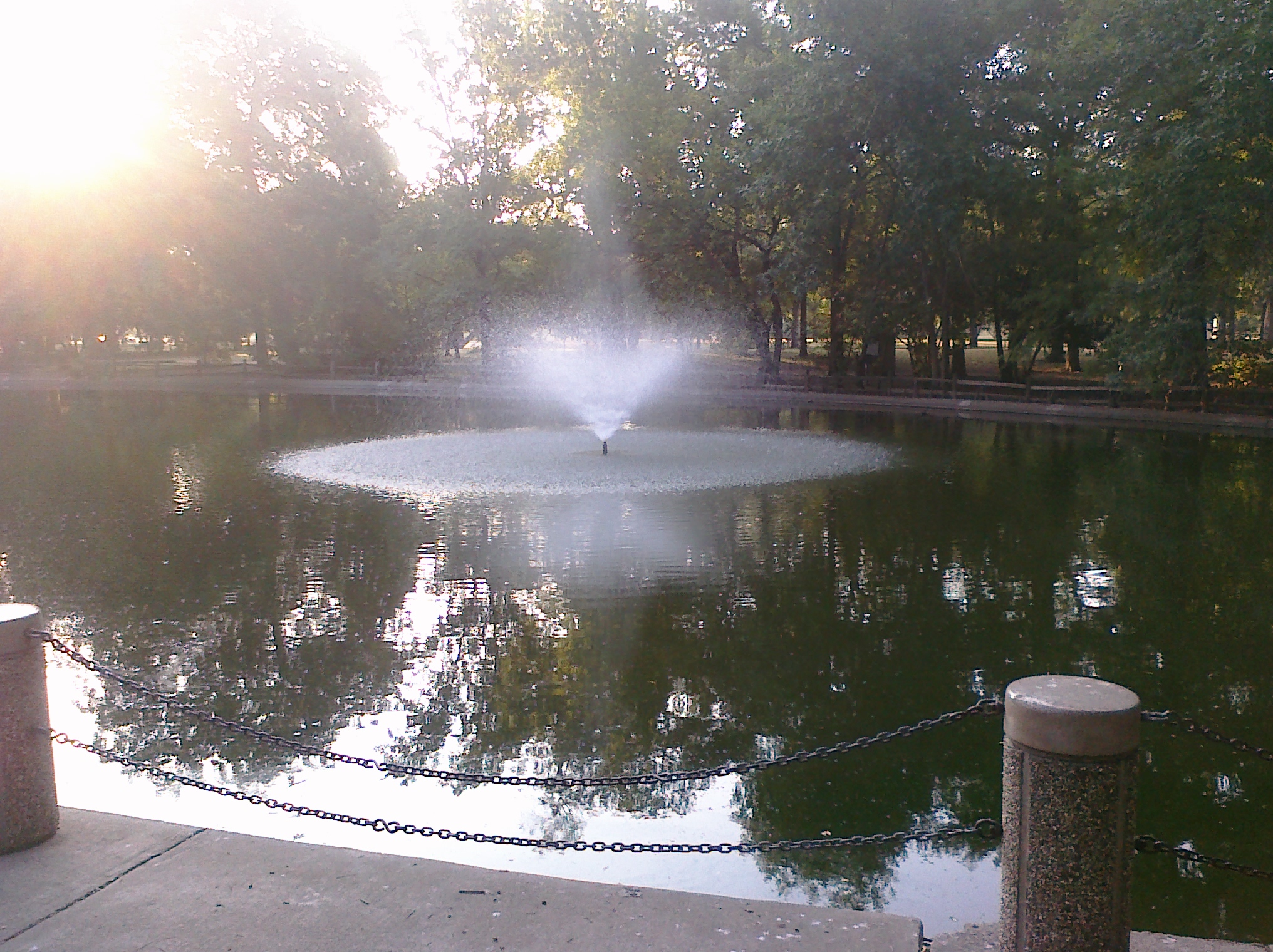 I stopped and snapped this on the way back to the office. Cell phone resolution is sketchy, but there are little ducks swimming in the fountain. That’s a good way to start the day! That and a 10 mile ride at 86 degrees!! It felt like riding in a walk in cooler, Chickies!
