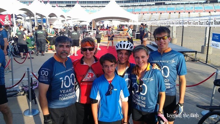 3. Good for you on the A1c, Angela! Sometimes we think we are doing this for nothing, but THAT is proof. A house with no girls? BooHoo. Great pic with your family and all your official gear on for the Tour – great companionship shows.