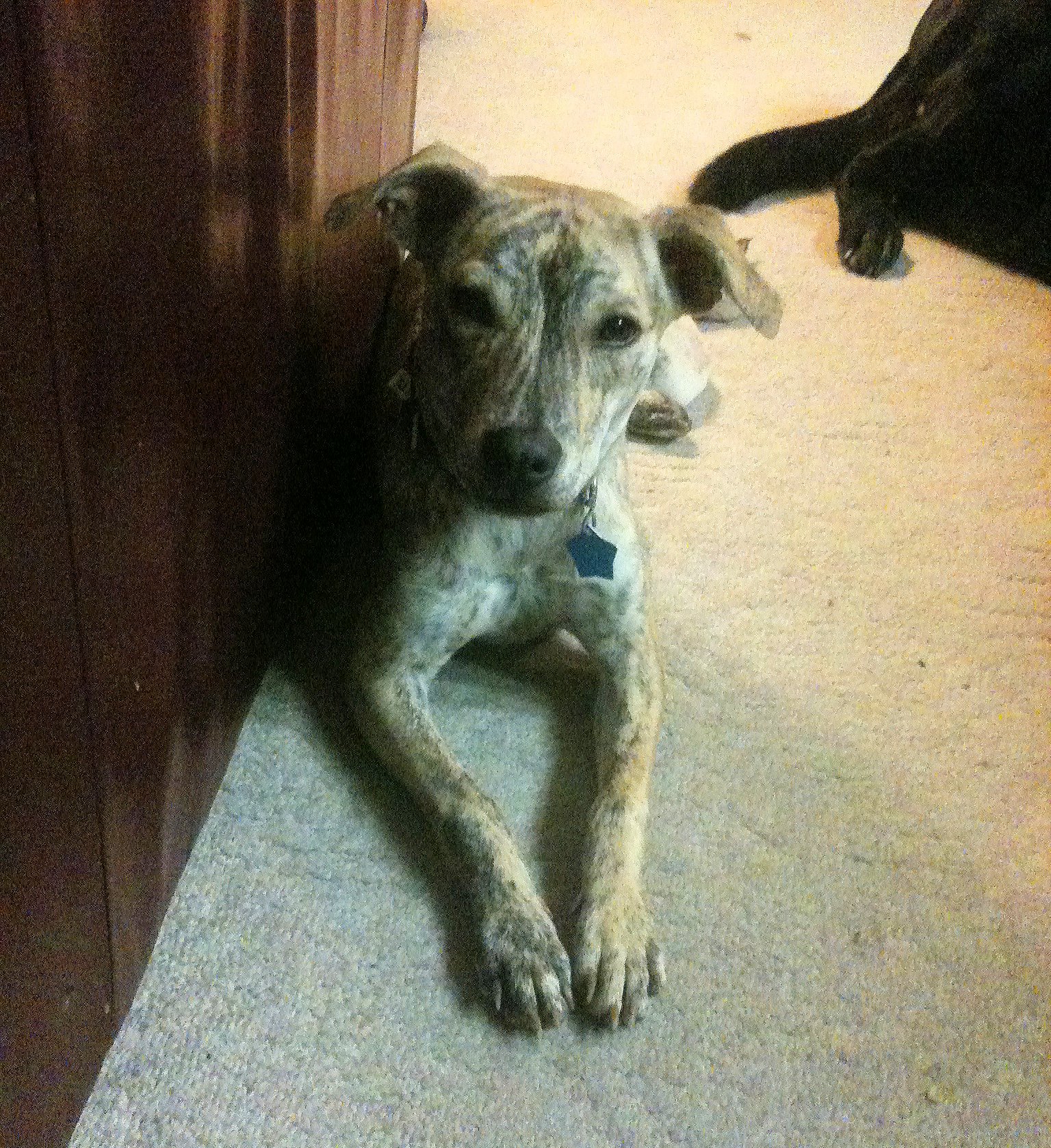 Dear Kasey – You’re doing a great job learning how to behave inside. We haven’t had any accidents in several days. However, you really need to stop drinking a lot of water and then running around so fast that it comes back up again. Especially if you’re right behind me. You do need to stop fussing with the cat. He’s displayed amazing patience with you to this point. Keep it up, though, and he’s going to smack you with those spiffy claws and you won’t like it one bit. You are going to focus this week on learning NOT to jump up and pace on top of the pool table. And? No matter how cute it is, you may not sleep curled up on top of tall chairs in the sunroom.