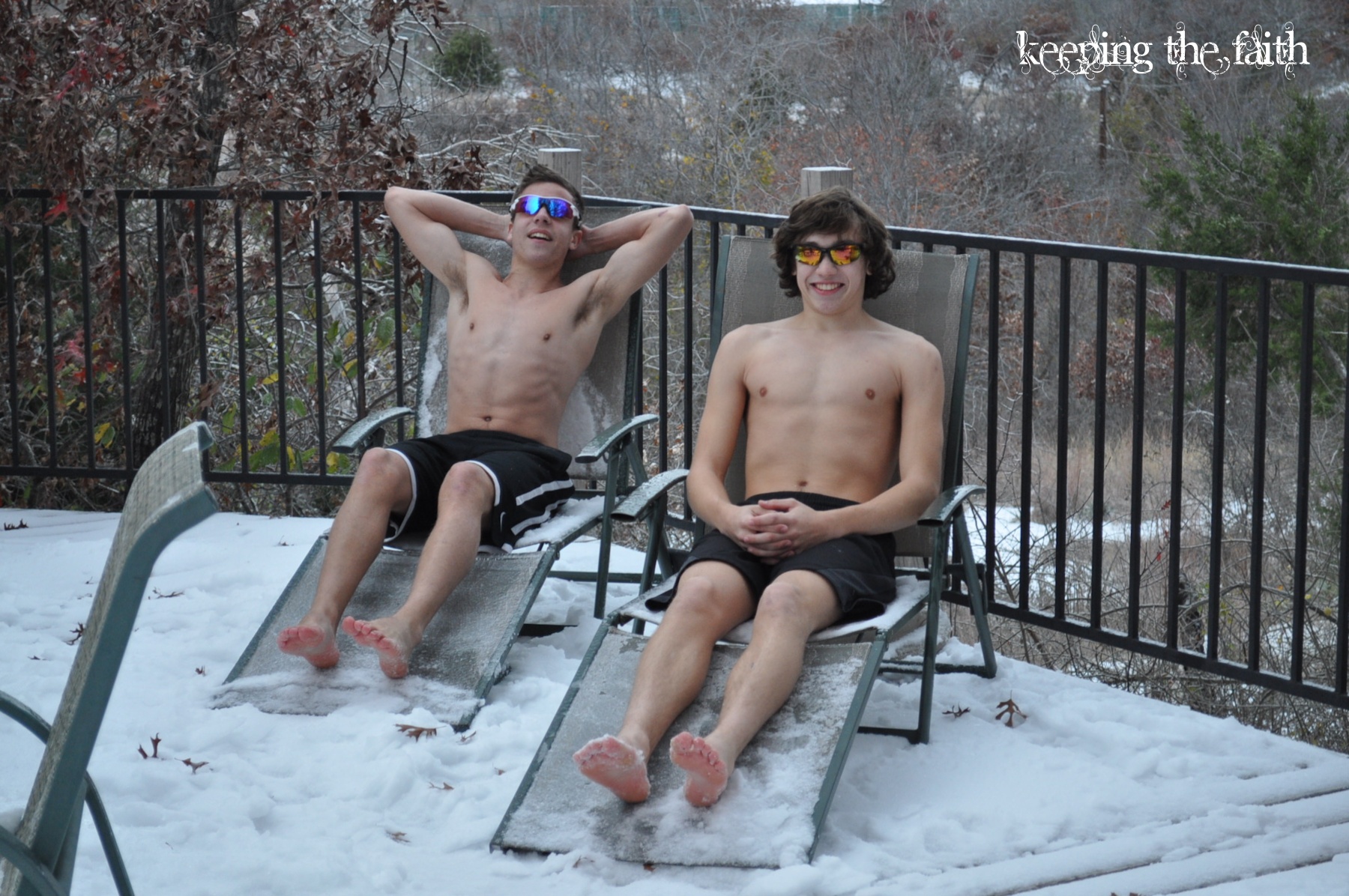 We got 16″ of snow this past week and are now in a deep freeze. Highs today was -11 and tonight -30, tomorrow colder. I love the boys picture.